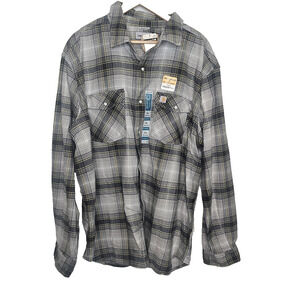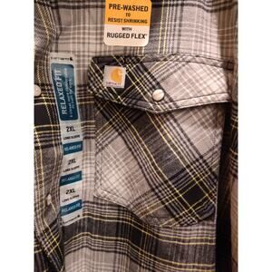 Carhartt Cotton Pearl Snap Green Plaid Flannel Men's Relaxed Fit Shirt Size 2XL