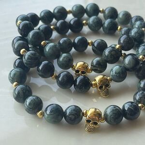 Kambaba skull crystal stone ONE NEW stretch bracelet green black handmade meditation reiki yoga