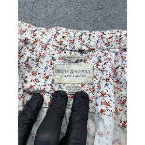 Ralph Lauren Mens Large Shirt Top White Red Floral Button Collar Cotton Casual