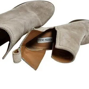 Steve Madden Sharini Taupe Suede Cutout Booties 9M 3” Block Heel Ankle Boots