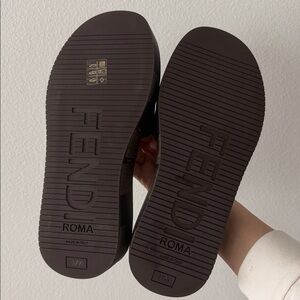 Fendi Sunshine Flatform Platform FF Logo Jacquard Baguette Feel Slides 37.5