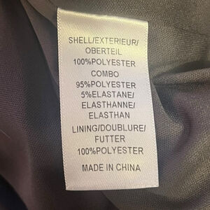• 100% polyester shell and lining; combo 95% polyester, 5% elastane