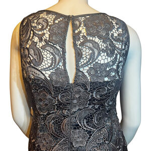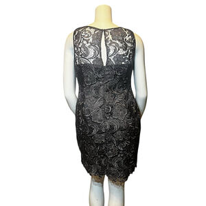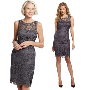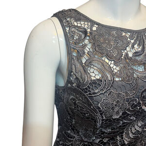 Adrianna Papell Lace Illusion Sheath Dress Charcoal Floral Cocktail, 14