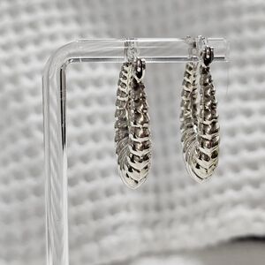Vintage Chunky Ribbed Silver Oval Shrimp Hoop Earrings 925