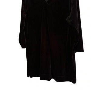Land’s End Black Velour Mini Dress Tunic Straight V-neck 3/4 Sleeve