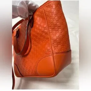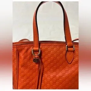 Elegant orange tote with signature Gucci pattern. Features dual handles and a detachable strap.