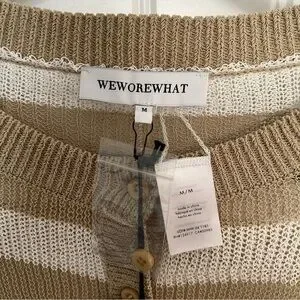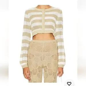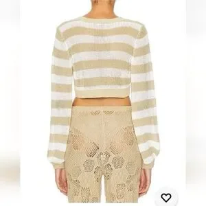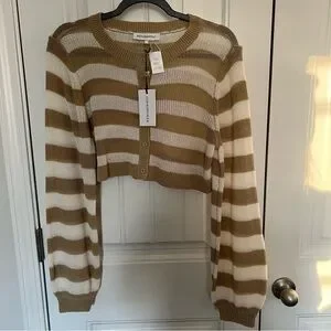 NWT WeWoreWhat Women's Striped Crochet Cardigan Crop Knit Top M $98