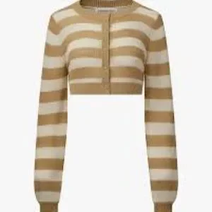 Stylish cropped cardigan with beige and white stripes. Features button-up front and long sleeves. This Weworewhat striped crochet cardigan is a must-have for any fashion-forward woman. With its crew neckline, long sleeves, and button closure.