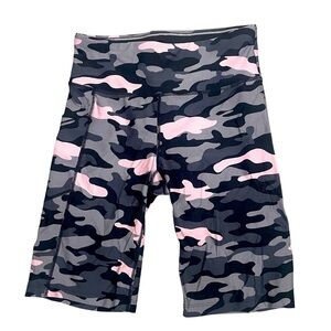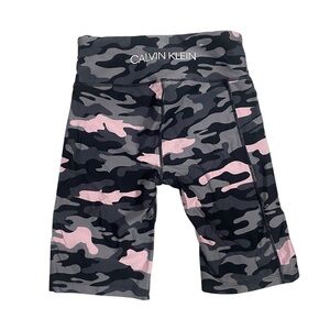 CALVIN KLEIN Pink Gray & Black Camo Print Stretch Biker Shorts Yoga Gym