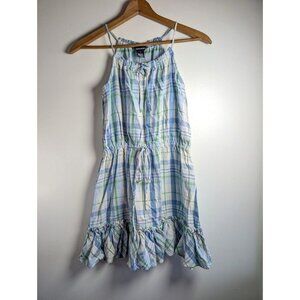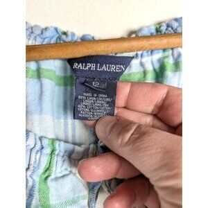 Ralph Lauren Girls Dress Size 12 Ruffle Linen Blend Plaid Summer Easter Party