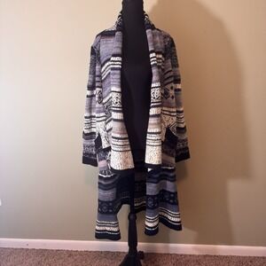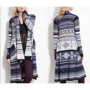 Free People Yesterday's Smile Open Cardigan Wool Alpaca Fair Isle Size Large