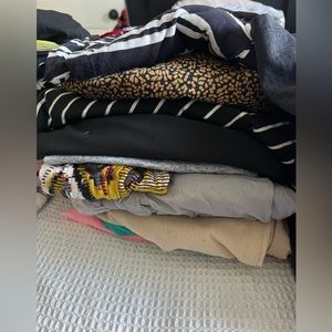 No guarantee on brands but Brands I know are in that pile are : Madewell, free people, SHEIN, forever21 , gap, boutique, target, old navy, Nike, north face, b originals, Paige, Victoria’s Secret and Victoria’s Secret pink