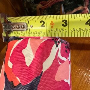 This stylish Trina Turk bag features a vibrant pink floral design. Crafted with attention to detail, it's a must-have accessory for fashion-forward individuals. Light fading on corners. Good condition any questions leave in comments