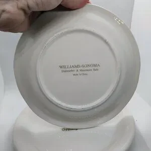 Enhance your dining experience with these exquisite Williams Sonoma appetizer plates. Featuring elegant Stilton and Appenzeller cheese designs, they are perfect for wine and cheese gatherings. The high-quality white porcelain adds a touch of sophistication to any table setting.