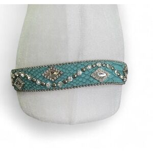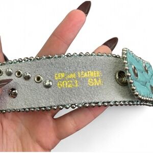 Western Teal Alligator Leather Belt Silver Stud Crystal Rhinestone Conchos Small