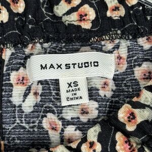 Max Studio Shirt Womens XS Black Cream Floral Flower Blouse Bohemian Peasant