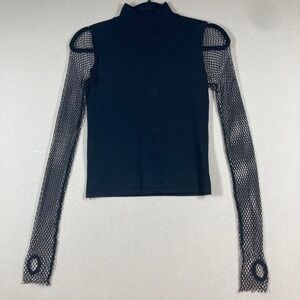 Zara Knit Top Small Black Cropped Mock Neck Sheer Fishnet Sleeve Edgy Punk Goth