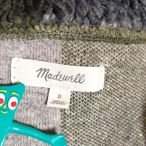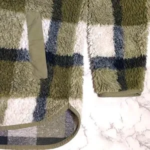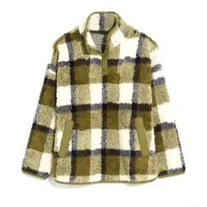 Madewell Olive Plaid Sherpa Popover Tunic Fleece Jacket, Size S