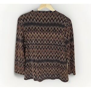 Vtg Carole Little Womens Top Black 8 Funnel Neck Knit Chevron Metallic Boho