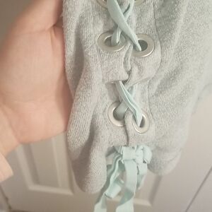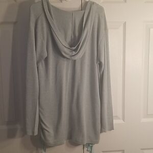 Preowned and preloved active hooded tunic tunic. It has lacing on the sides. The color us a soft true-blue, while the laces are brighter.