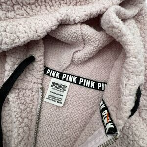 Victoria Secret PINK SMALL Hoodie Sherpa Fleece 1/4 Zip Pink Pullover Cozy