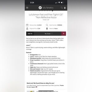 Lululemon Fast and Free Tight II 23" *Non-Reflective Nulux Grape Leaf