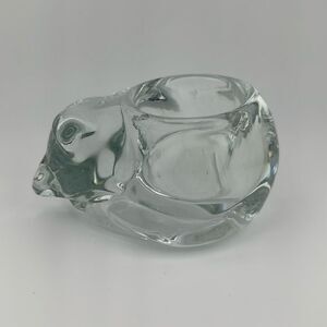 Vintage Indiana Glass Clear Sleeping Cat Votive Candle Holder