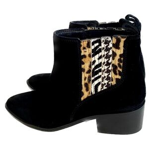 CROWN VINTAGE Black Suede Ankle Boots Animal Print on Side Shaft 2” Heel Size 8