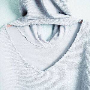 Vintage Havana Blue Ribbed Cropped Hoodie with Open Back