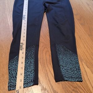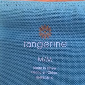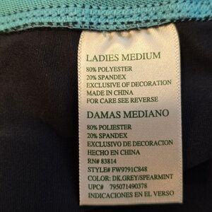 Pair of Tangerine Gray with Teal Accents Yoga Workout Pants, Capris are specifically designed for women in size M. The leggings feature a straight leg style and are perfect for yoga or other activewear occasions. The gray color with teal accents adds a touch of style to the capris, making them both functional and fashionable for your workout wardrobe. Made with a compression area in the leg, these capris from Tangerine offer comfort and support during your yoga practice.
