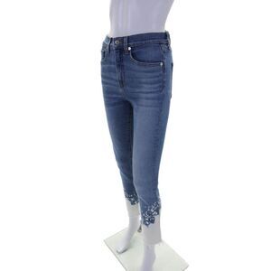 Veronica Beard Womens High Rise Bleached Hem Skinny Jeans Blue Size 27