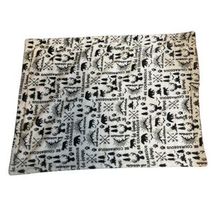 Cozy blanket with black and white patterns. Features inspirational text and nature motifs.