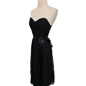 80s 90s Vintage Black Lace Dress Strapless Floral Size 9/10