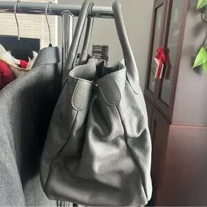 Mark & Graham Gray Elisabetta Slouch Leather Satchel tote pebbled leather Italy