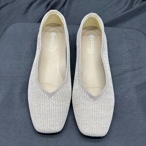 VIVAIA Beige Margot Knit Square Toe V Cut Flats Women’s 39 (8/8.5) LUXURY
