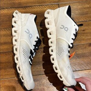 Sleek On Running shoes in cream with black accents. Ideal for active lifestyles.