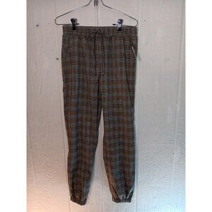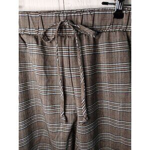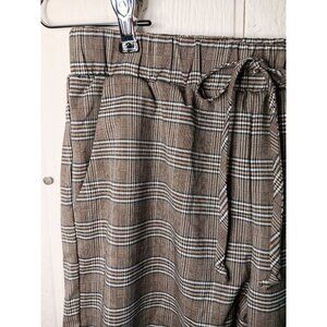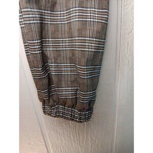 Sky and Sparrow Women S Black Taupe Plaid Elastic Waist Tapered Leg Jogger Pants