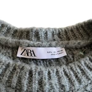 Zara Green Sequined Crewneck Long Sleeve Knit Pullover Sweater Size Large