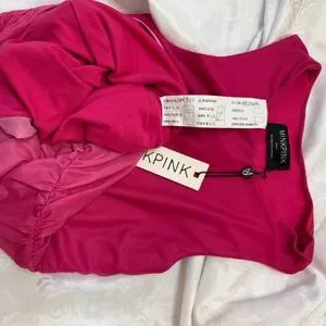 Bold pink mini dress with sleeveless design. Perfect for a chic look.