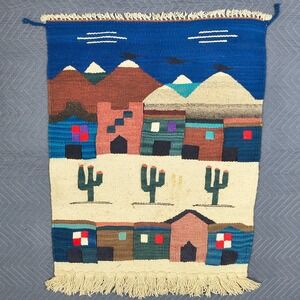 Vintage Southwestern Tapestry Wall Hanging Desert Pueblo Cactus Handwoven 38x28