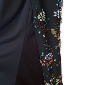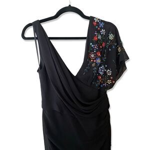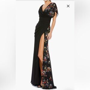 Ieena Mac Duggal Sz 4 Gown faux wrap multi floral beaded black dress #26530