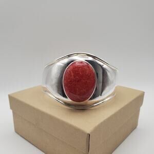 925 Sterling Silver Red Coral Southwestern Wide Cuff Bracelet 28.88 Grams