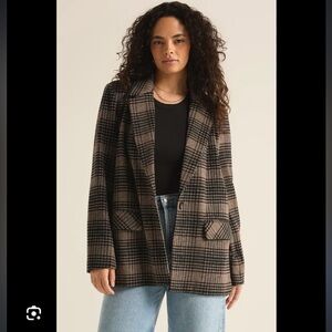 Z Supply Plaid Blazer - Black and Brown