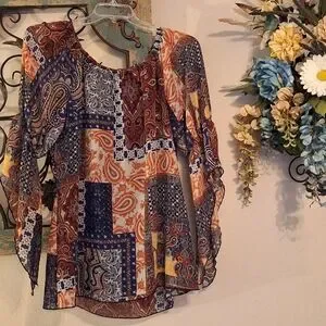 New Directions Multicolor Patchwork Blouse. Excellent Condition NWOT Size Med