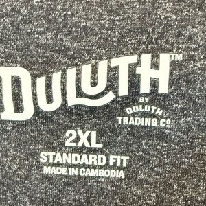Duluth Trading Co, men’s henley, long sleeve henley, gray henley shirt, men’s 2XL shirt, standard fit top, Duluth men’s clothing, nylon polyester blend, stretchy shirt, casual henley, workwear shirt, layering shirt, men’s casual long sleeve, Duluth Trading henley, 2XL men’s top, outdoor shirt