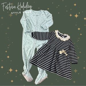 Baby Girls Petit Bateau Dress Carter’s Holiday Sleeper 24M Baby Outfit Bundle