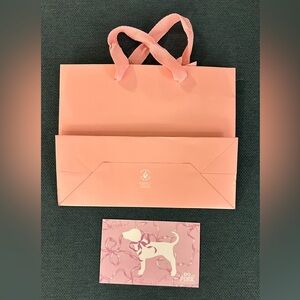 You will also receive an exclusive Victoria’s Secret PINK X LoveShackFancy gift bag and dog printed card (see photo).
