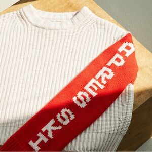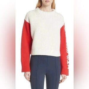 Knit to a ribbed finish, Tory Burch’s graphic sweater features a vintage look with contrast styling and an easy fit.
