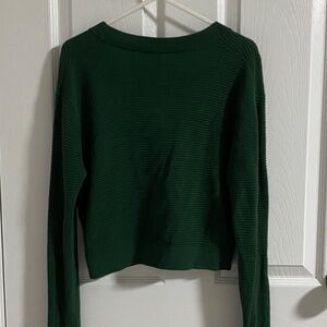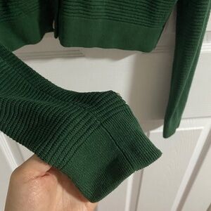 This is a forest green knit piece from Artizia's Wilfred collection, with a linen-blend texture and a flattering V-neck silhouette.