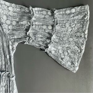 Sundance Ellery Lace Flare Sleeve Midi Dress Dusty Blue Sheer Prairie Size PL